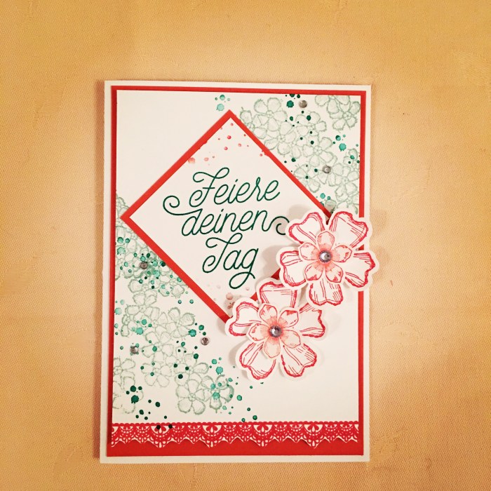 Heute habe ich eine Geburtstagskarte für Sie die eigentlich eher untypisch für mich ist. Sie hat relativ viel drauf und ist ziemlich verspielt und was soll ich sagen – sie gefällt mir richtig gut 😁 *lach*.