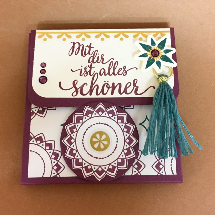 Dabei blieb mir natürlich gar nichts anderes übrig als die allerneuesten Produkte von Stampin‘ Up zu verwenden 😇😁😇. Das ist einer der vielen Vorteile eines Stampin‘ Up Demos 😉 wir konnten bereits diese Woche den neuen Jahreskatalog sehen und ich sage Ihnen *wohoooo* der ist wieder SENSATIONELL 😄!!! Und noch dazu konnten wir bereits jetzt ein Produktpaket bestellen das es wirklich in sich hat! Es heißt Orientpalast 😍😃.
