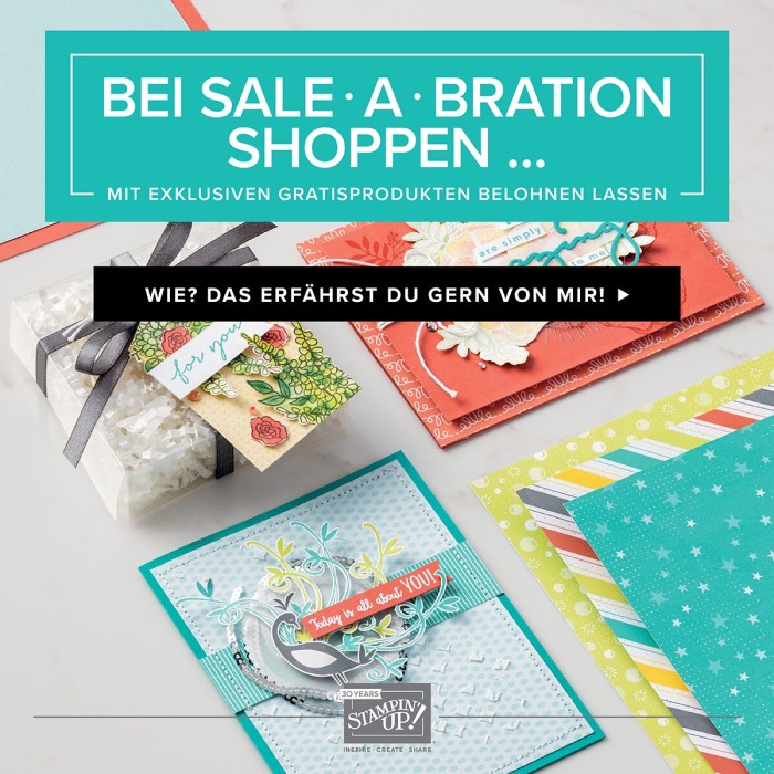 In schnellen Schritten nähern wir uns der „geschenkereichsten“ Stampin‘ Up Zeit 😍 der Sale-a-Bration kurz „SAB“ genannt.