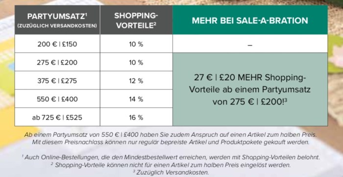 wird ein Bestellwert über Euro 200, erreicht bekommen Sie, wie üblich Gastgeberprozente auch Shopping Vorteile genannt. Ab 275,– erhalten Sie zusätzlich zu den Gastgeberprozenten weitere Euro 27,– 👏👏👏 juhuuu. (Siehe Foto Gastgeber sein)