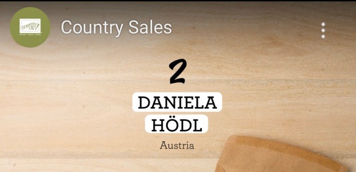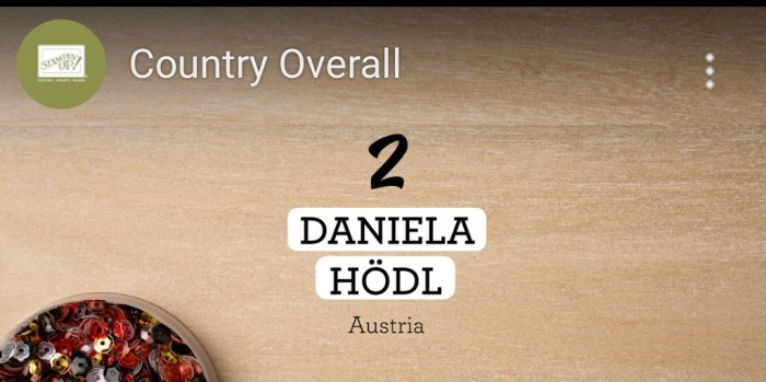 Stampin‘ Up! hat gestern Abend die alljährlichen Ranglisten mit den erfolgreichsten Demos bekannt gegeben. Da werden alle Demos miteinander verglichen und mittels bestimmter Punkte in eine Reihung gebracht. Dies geschieht zum Einen immer Landesweit – in meinem Fall also österreichweit – und zum Anderen auch weltweit.