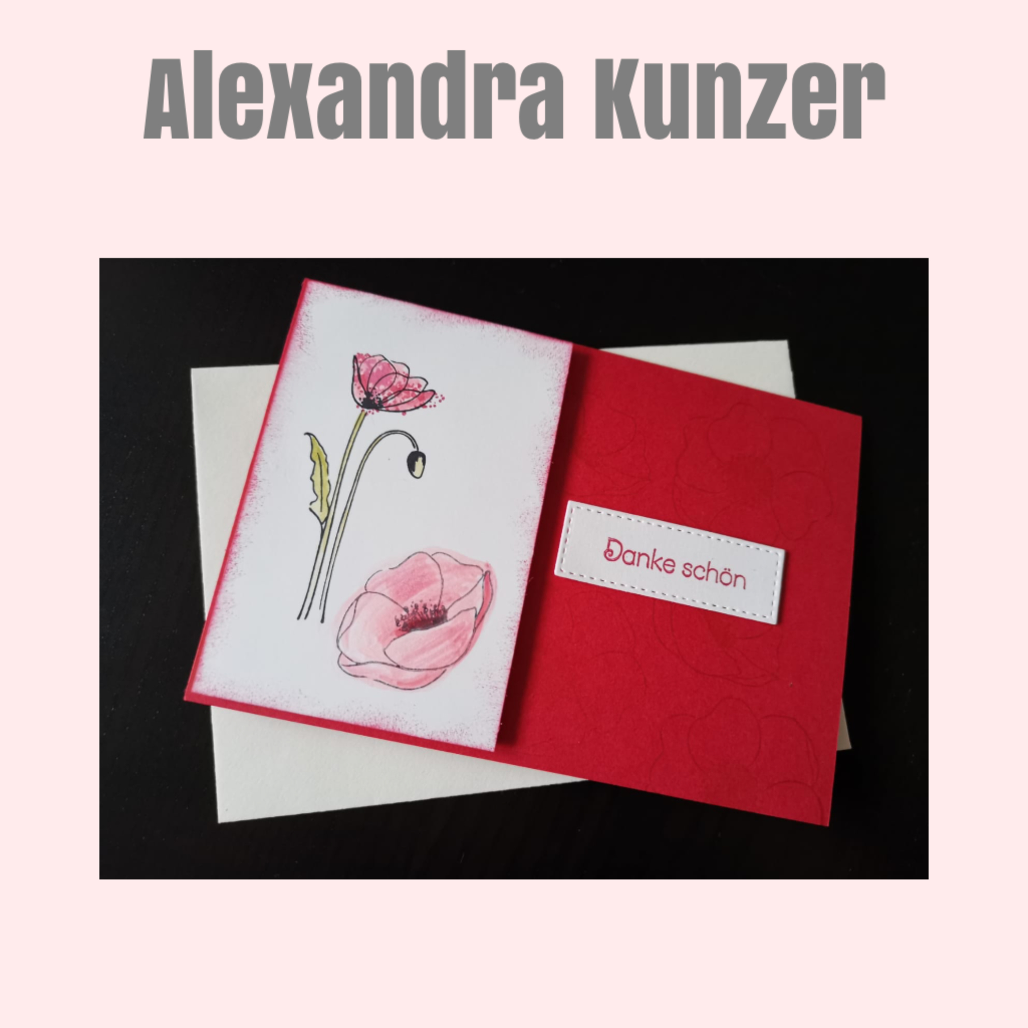 Zuerst aber zu meiner Karte 🥰… sie ist ein Traum von zarten Mohnblumen und geht eigentlich gar nicht schwer zu basteln… eventuell braucht es etwas Übung beim Aquarell malen… hier gilt aber: „Nicht zu streng mit sich selber sein und auch mal fünf gerade sein lassen…“ 😉