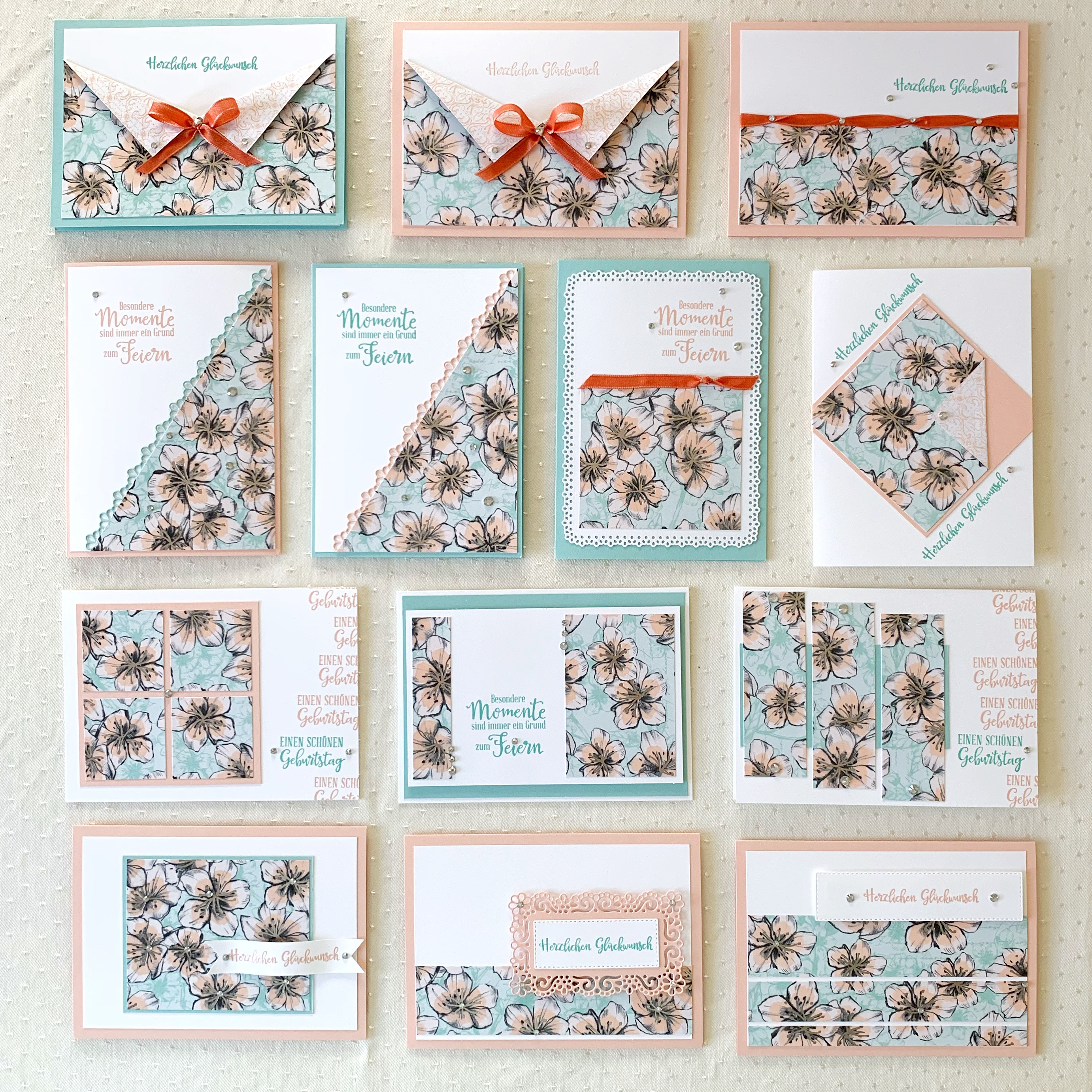 - 3 Kartenrohlinge in passendem Farbkarton zum DSP (14,5 x 21 cm gefalzt bei 10,5 cm)