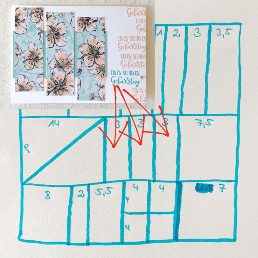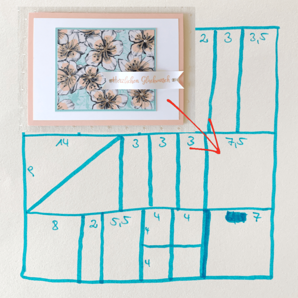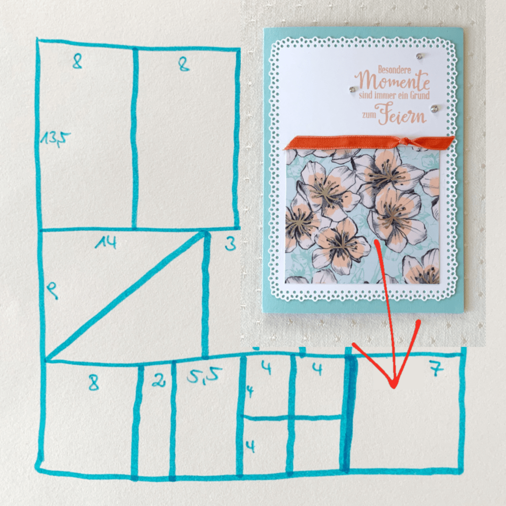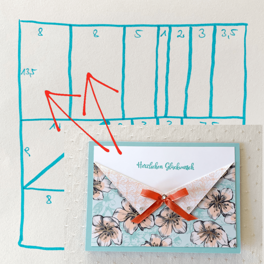 so meine Lieben, wie im Online Basteltreff angekündigt, kommt hier nun mein Schnittmuster zum heutigen „One Sheet Wonder“ 😃😁… bitte verzeihen Sie, dass es optisch nicht ganz zu den Maßen passt 🙈 ich hab‘ im Moment nur die Möglichkeit es per Hand zu skizzieren… die Maße passen aber und ich denke Sie kennen sich aus 🥰