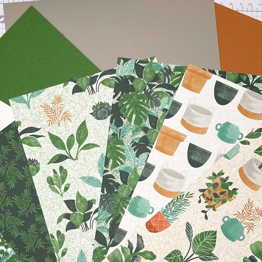 - 6 Blatt Farbkarton A4 (je 2 Blatt in Gartengrün, Granit und Zimtbraun)