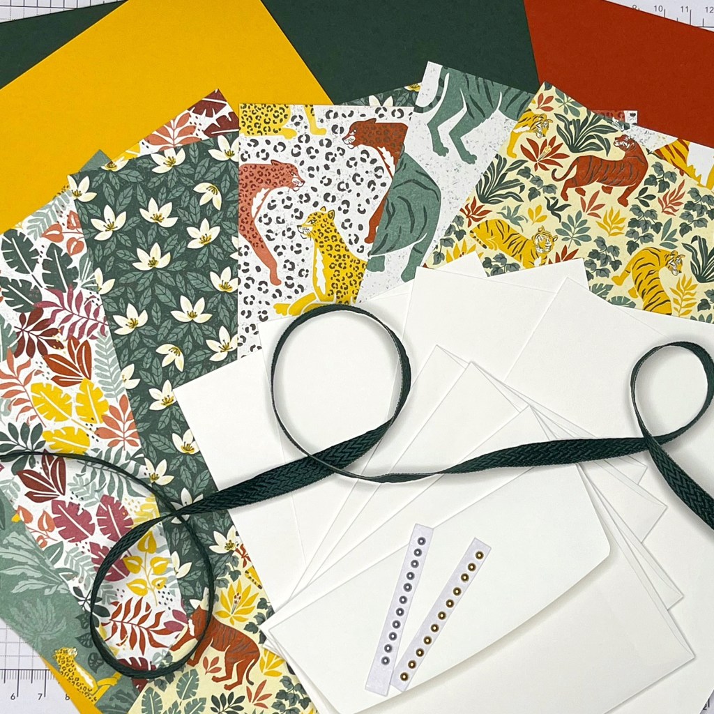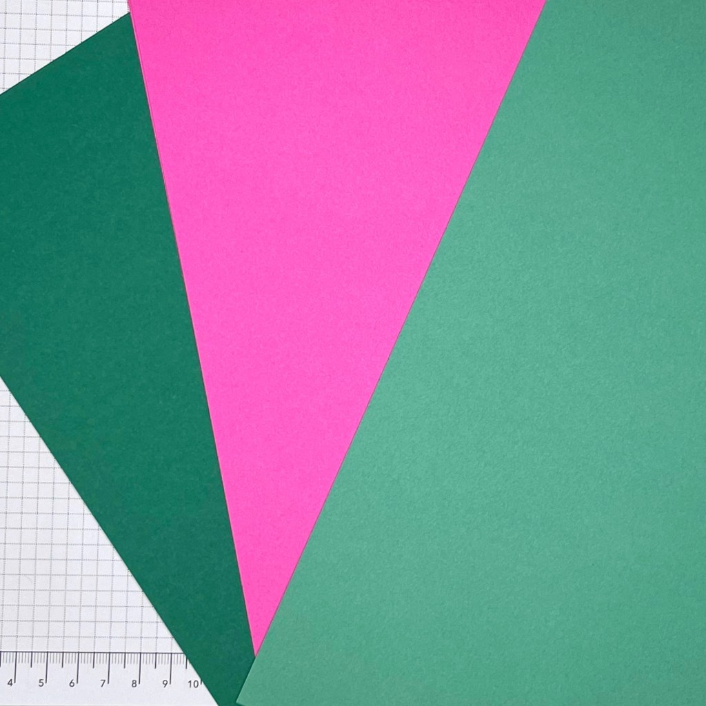 - 6 Blatt Farbkarton A4 (je 2 Blatt in Aventurin, Magenta und Tannengrün)