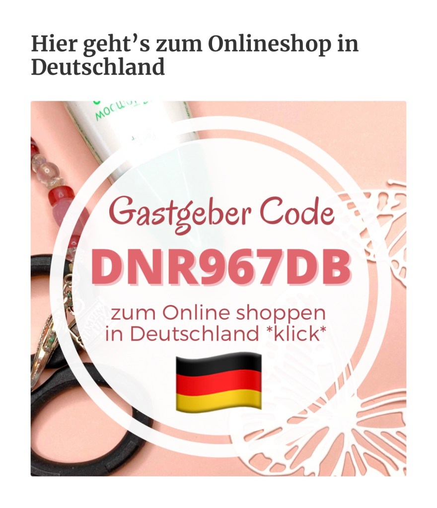 Da die Link‘s meistens automatisch mit einem Gastgeber Code hinterlegt sind, sind Sie zum Einen gleich direkt bei mir im Shop und brauchen sich zum Anderen nicht mehr um den Gastgeber Code zu kümmern wenn Sie unter Euro 200,— bestellen.