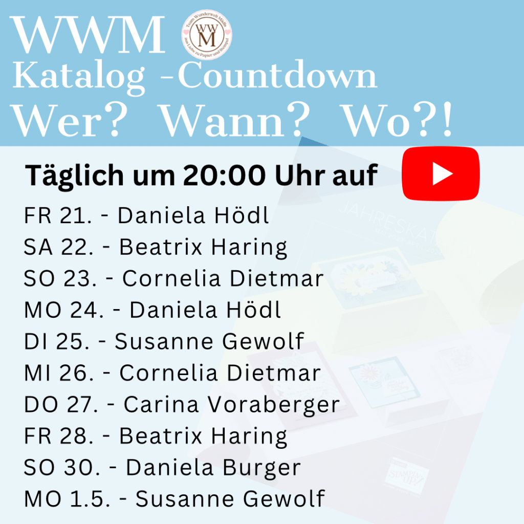 Beatrix Haring hat den Anfang gemacht und ab sofort kommt JEDEN ABEND um 20:00 Uhr ein neues Video mit kreativen Ideen von uns anderen WWM dazu 😍.