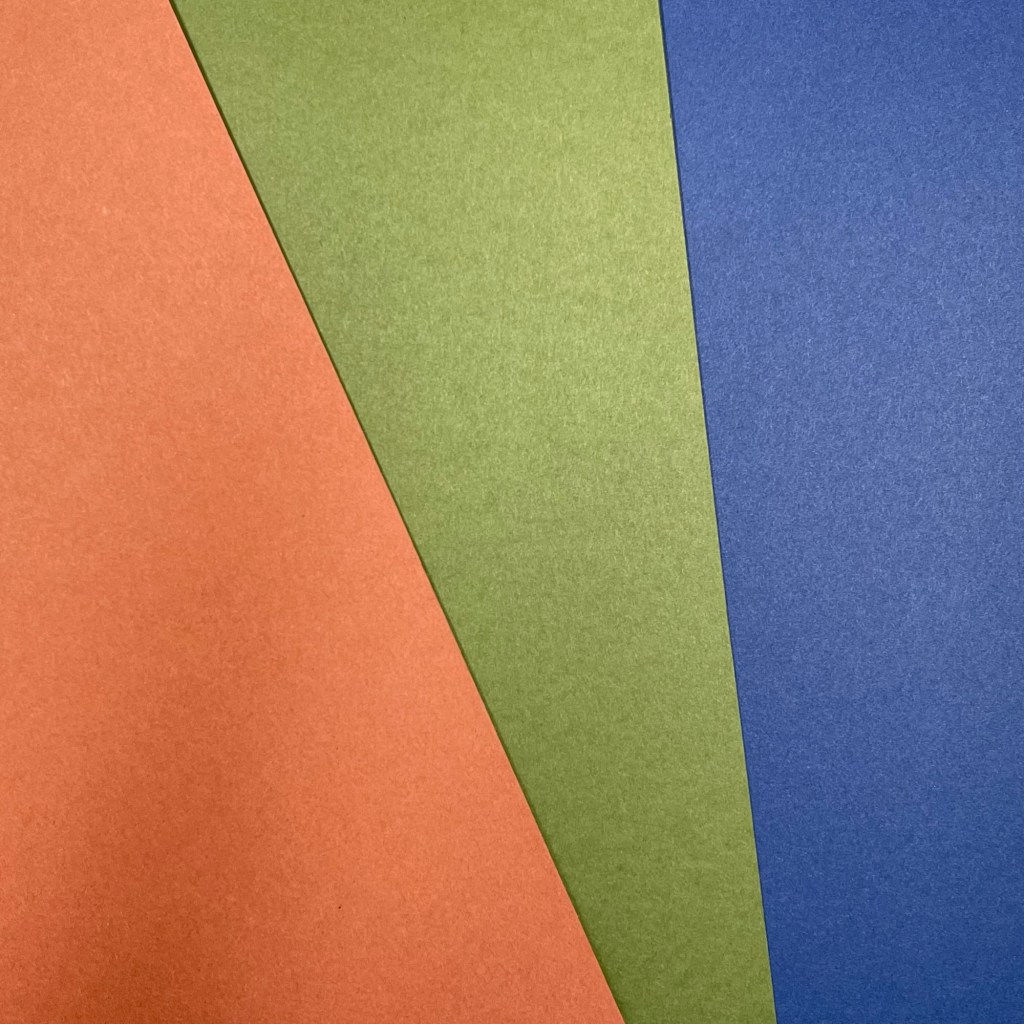 - 18 Blatt Farbkarton A4 (je 6 Blatt in Kupferbraun, Waldmoos, Marineblau)