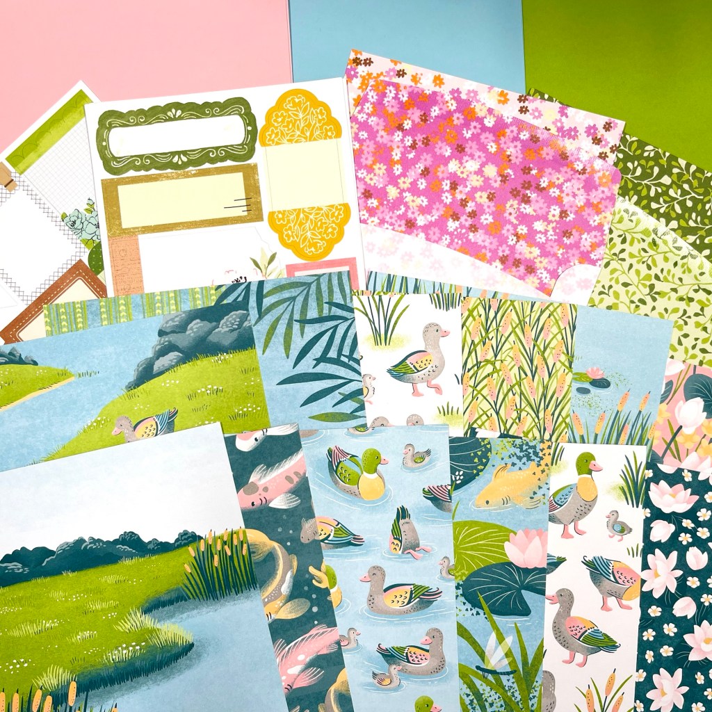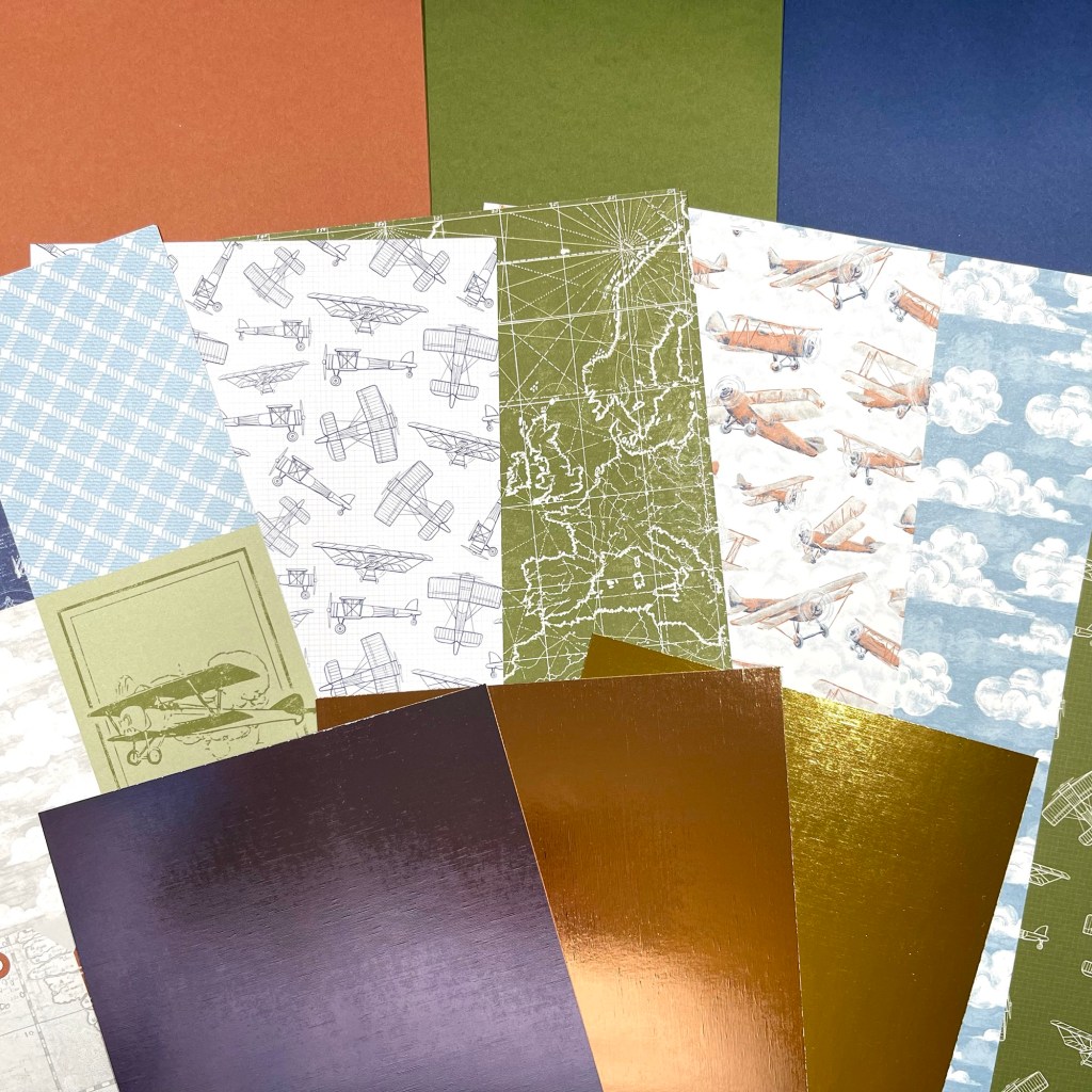 - 12 Blatt DSP in 12″ x 12″ (je 1 Blatt in allen 12 doppelseitigen Designs)