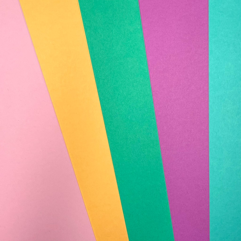 - 10 Blatt Farbkarton A4 (je 2 Blatt in Rose, Pfirsich-Creme, Glücksgrün, Südseesommer, Petunienpink)