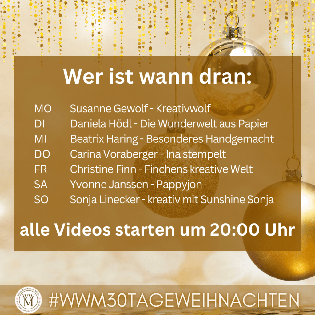 es ist wieder soweit 🥳 HEUTE Abend um 20:00 Uhr geht es los mit unserer „WWM 30 Tage Weihnachten“ Aktion 🥳😍🥳!!!
