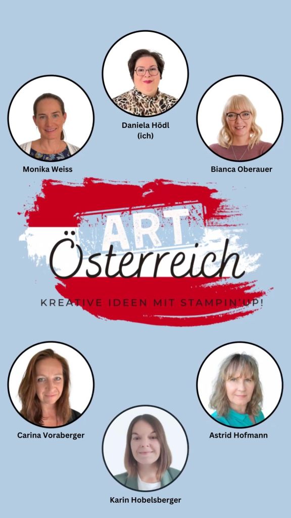 ART Österreich sind 6 Unabhängige Stampin´ Up! Demonstratorinnen die sich zu 1 Projektgruppe zusammen geschlossen haben. Dabei mischen sich sowohl unsere Bastelstile, als auch unsere Herkunftsorte (diverse österreichische Bundesländer sind vertreten) und wir sind auch noch in verschiedensten Stampin´ Up! Teams „zuhause“. Genau dieser Mix macht dieses Projekt so spannend!