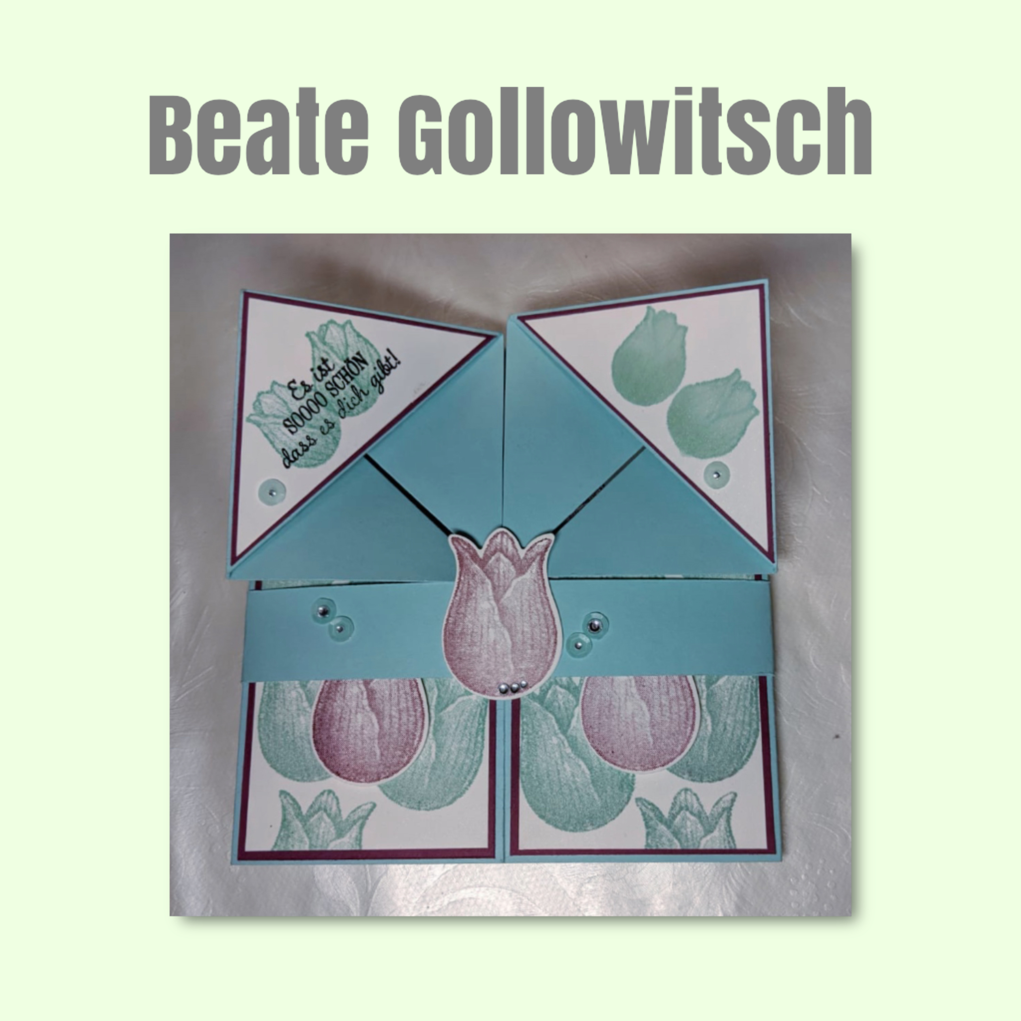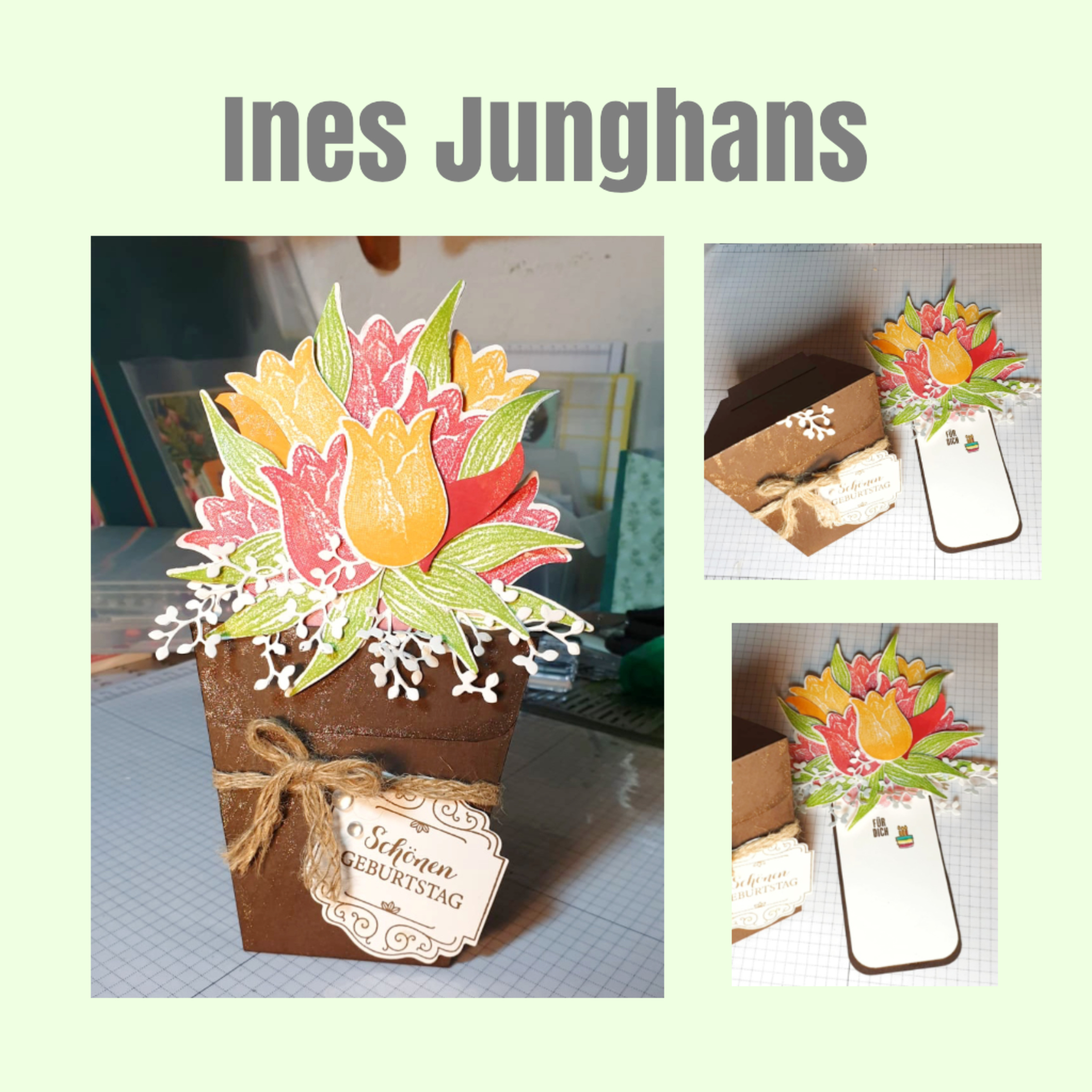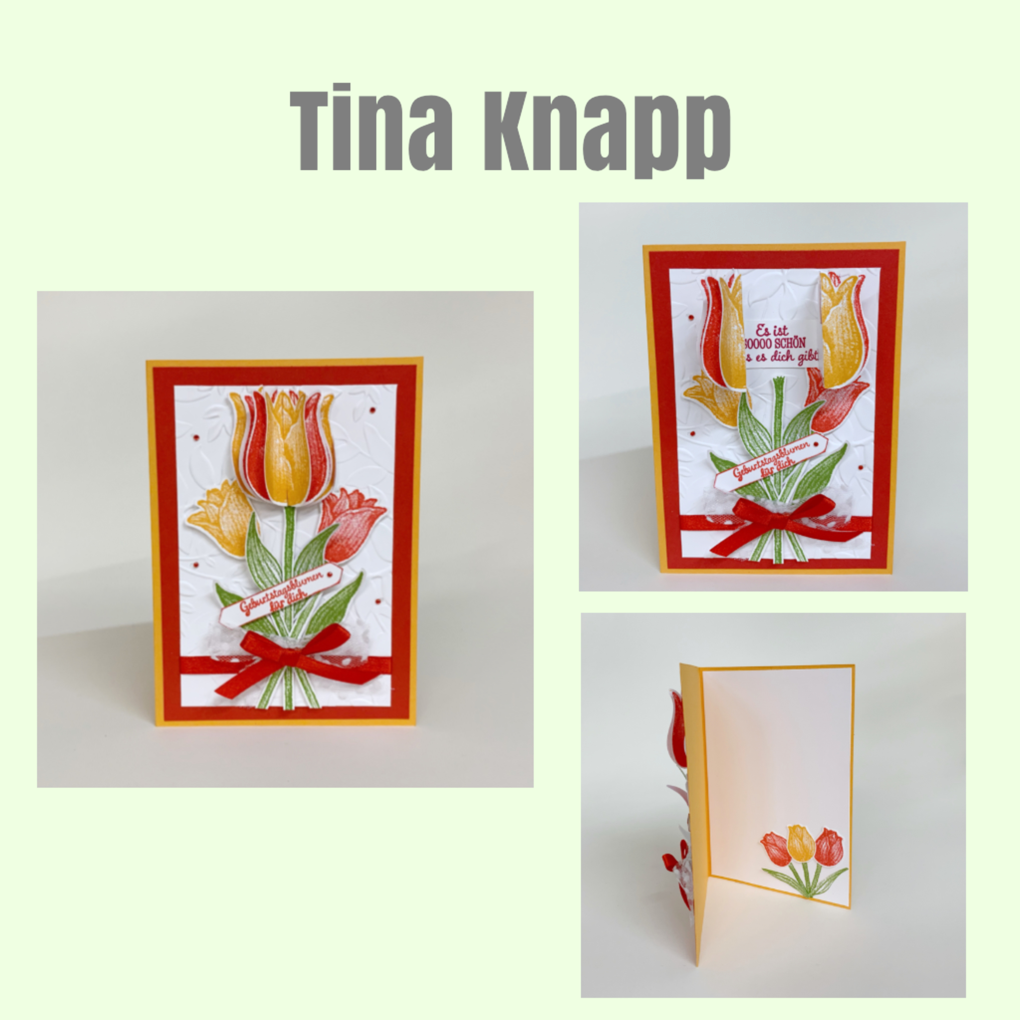Es galt also was „tulpiges“ zu zaubern und da hat mich was gaaaaaanz ausgefallenes erreicht 🤩😁… und zwar eine Tulpenkarte von Tina Knapp. Unsere Tina hat sich wirklich ins Zeug gelegt und sich eine sooooo süße Karte ausgedacht – die MUSSTE ich einfach in ein Anleitungsvideo packen 🙈😂🤣 *lach*