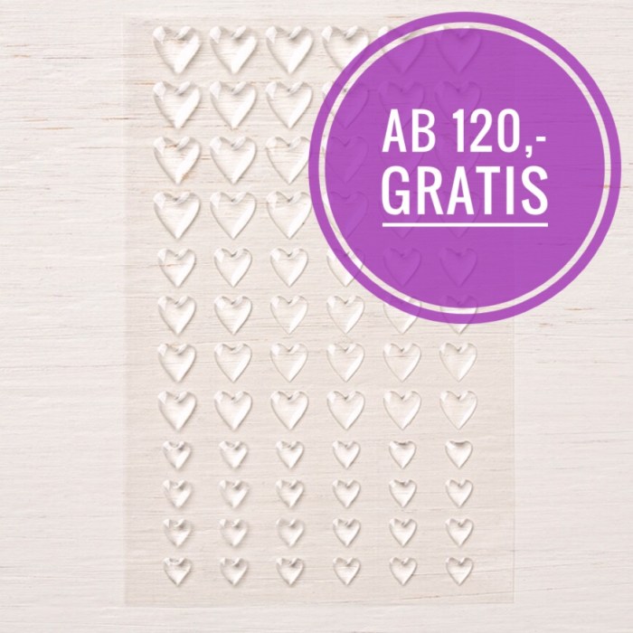- Ab einer Bestellung von € 120,– bekommen Sie 1 Packung Epoxid Herzen – weil man gar nicht genug Herzen haben kann und sie mit den Blends in jede Farbe gezaubert werden können 🤩 traumhaft *schwärm* – und wem sie noch nicht aufgefallen sind, dem sei an dieser Stelle gesagt die sind ein wahrer Traum und ein MUST HAVE für uns Bastler😁! Sie möchten sehen wovon ich hier so begeistert erzähle?! Na dann hab‘ ich hier das Bild für Sie